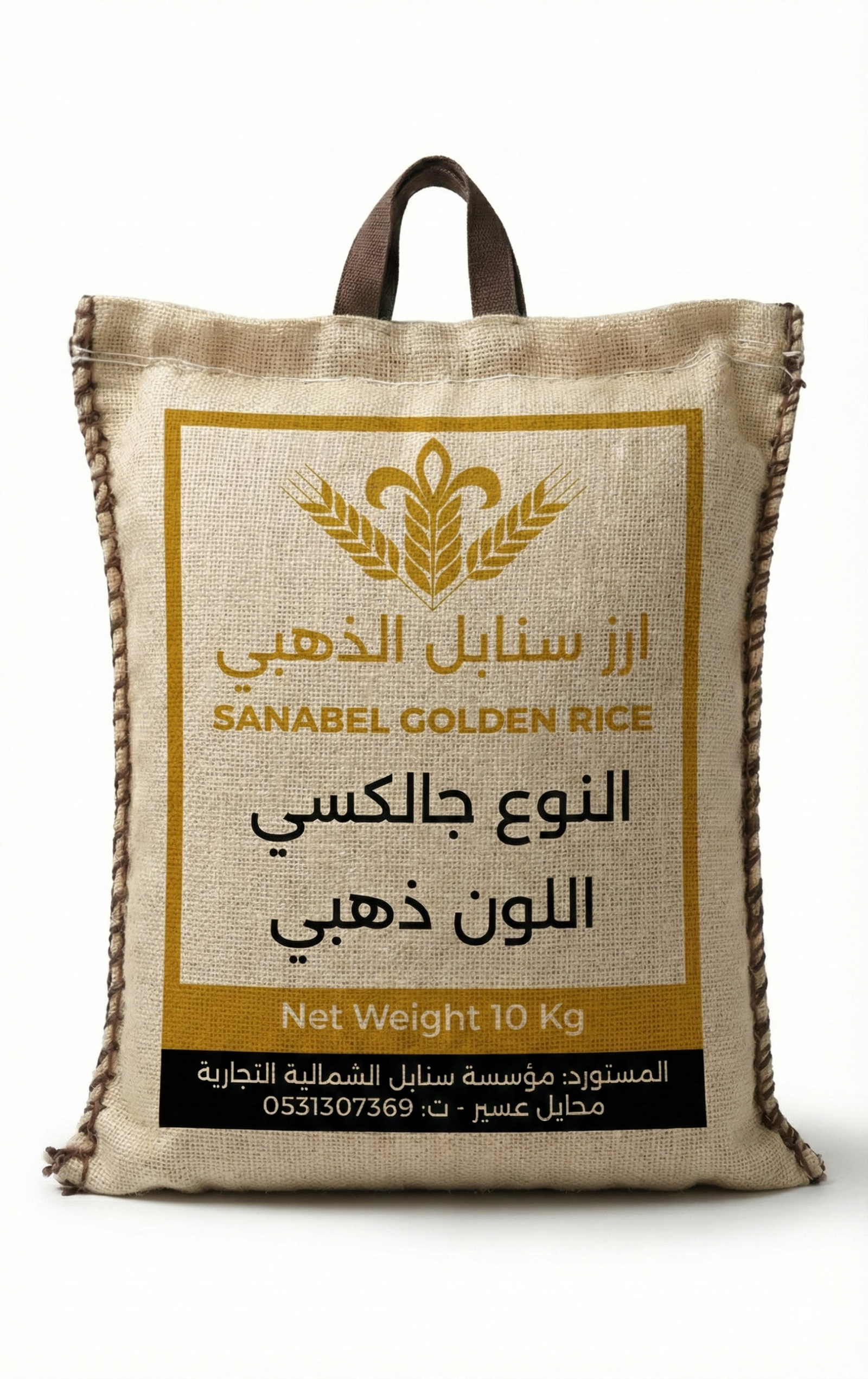 أرز سنابل الذهبي (1121) هو عنوان الفخامة على مائدتكم. يتميز بلونه الذهبي الفريد وحبته الطويلة التي تزداد طولاً بعد الطهي، مما يجعله مثالياً للمندي والمظبي والولائم الكبرى.
